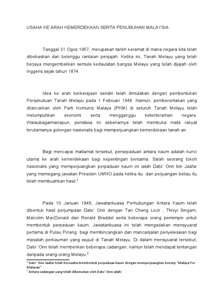 Bendera malaysia di naikkan pada pagi 31.ogos.1957. Parapuan adalah ruang aktualisasi diri perempuan untuk mencapai mimpinya. Bagaimana islam sebagai identitas melayu? He remained prime minister after sabah, sarawak, and singapore joined in 1963 to form malaysia. Pemasyhuran kemerdekaan itu dipersiapkan dengan matang.