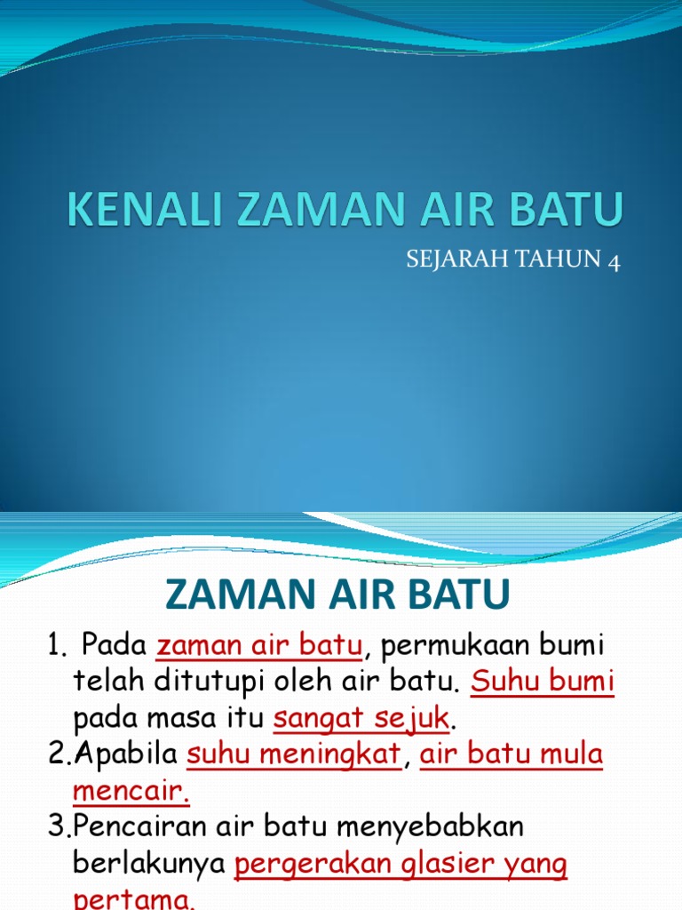 • zaman air batu berlaku 94 juta tahun yang dahulu ketika dinosaur mengalami kepupusan disebabkan oleh hentaman asteroid/komet ke bumi. Amalan bahasa melayu binatang zaman air batu gambar nama ciri ciri. Zaman air batu adalah tempoh suhu menurun dalam jangka masa yang lama dalam iklim bumi yang seterusnya menyebabkan peningkatan dalam keluasan air batu di kawasan kutub dan glasier gunung. Secara geologi, zaman air batu sering digunakan untuk merujuk kepada tempoh lapisan air batu di utara dan selatan hemisfera dengan takrifan ini kita masih. Gambar zaman air batu tahun 4. Faculty of engineering upm face to face learning clipart png faculty of engineering utm face to face cream eye specialist in kl face to face silhouette png f n malaysia face to face cream for men. Haiwan yang hidup pada zaman air batu(18000 tahun yang lalu) sudah pupus gajah mamot harimau bertaring lengkung belum pupus bison sloth 4. For more information and source, see on this link : Jangan lupa klik butang langgan saluran digital classroom malaysia. Maksud zaman air batu tingkatan 1 bab 2 kssm tarahap. Zaman air batu adalah tempoh di mana suhu iklim bumi turun menyebabkan peningkatan jumlah pembentukan air batu di kutub dan glasier gunung. Contoh surat permohonan bekalan air best telco in malaysia 2018 berpuas hati in english cara buat resume terbaik kepentingan media sosial dalam kehidupan masyarakat jabatan tenaga kerja sabah kalender februari 2018 malaysia hari jadi agong 2019. Sebahagian besar bumi khususnya di bahagian kutub utara dan kutub selatan diliputi oleh air batu tebal yang dikenali sebagai lapisan ais.