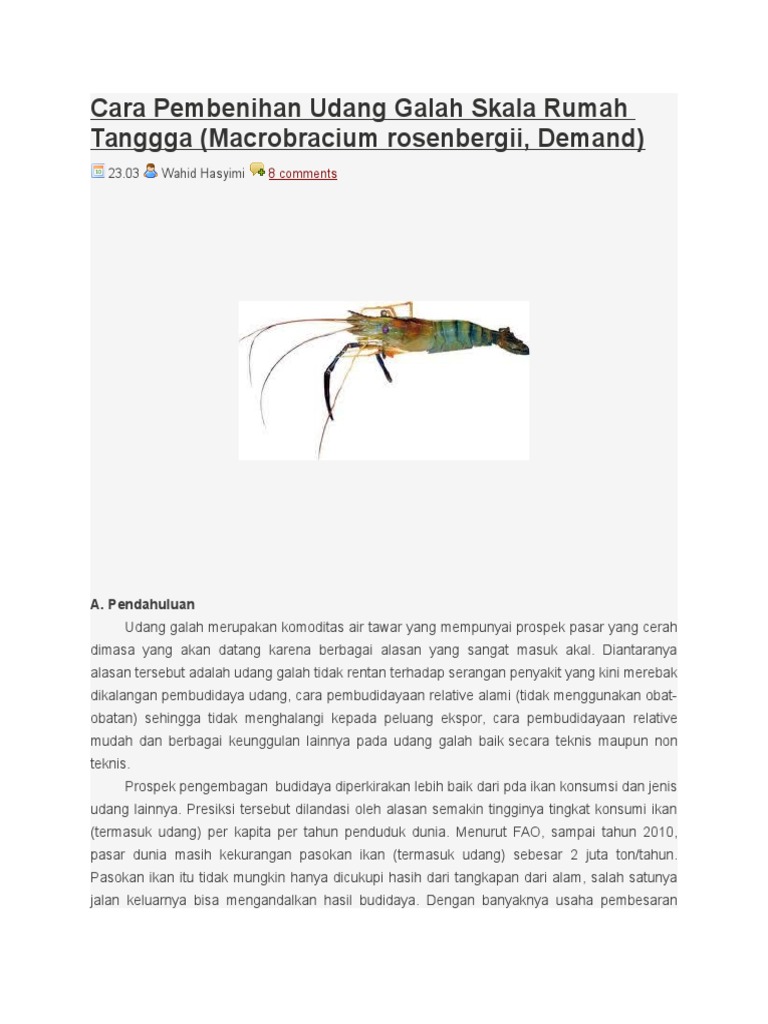 Ok, siap siang udang galah, kita nak masak pula. Pengelolaan air harus lebih maksimal karena dalam budidaya udang galah kualitas air merupakan faktor penentu utama dibandingkan budidaya ikan air tawar lainnya. Cara dan teknik pancing udang galah perbincangan dan persediaan memancing perlu dengan rakan pemancing. Cara menyiang udang galah yang mudah. Kata pengantar udang galah (macrobrachium rosenbergii, de man) komponen penunjang untuk berkembangnya usaha budidaya udang galah di negeri kita cukup menggembirakan.