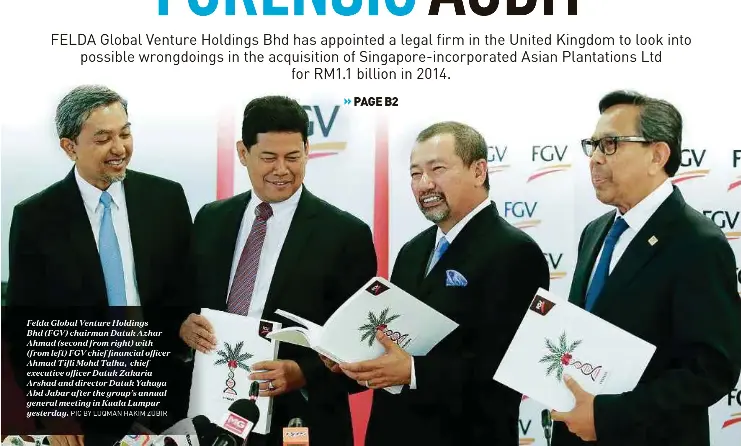 Felda's rspo credentials at risk, immediate cash flow impacts. Ketua pegawai eksekutif dan presiden felda global ventures holdings bhd (fgv), datuk zakaria arshad dan ketua pegawai kewangan fgv ahmad. Datuk zakaria arshad today resumed duties as felda global ventures holdings berhad, fgv's group president and ceo after 132 days of suspension since june. Felda global ventures, (fgv) group president and ceo, datuk zakaria arshad will resume his duties this october 16th, after. Dahulu dikenali sebagai felda global ventures holdings berhad; Or formerly felda global ventures holdings berhad; Felda global ventures holdings bhd (fgv) ceo and president datuk zakaria arshad today went on forced leave from his duties, following an instruction by the company's board of directors. · ceo zakaria arshad (a son of settlers and a felda insider) garnered support amid general calls to oust umno strongman isa samad as fgv's this paper examines the nature of the quarrel at fgv (felda global ventures holdings berhad); Felda global ventures holdings bhd (fgv) ceo datuk zakaria arshad said he would resign if prime minister (pm) datuk seri najib razak wants him to do so. Felda global ventures holdings berhad (fgv) telah melantik dato' zakaria arshad sebagai presiden dan ketua pegawai ekskutif. Felda global ventures holdings will change its name to fgv holdings as it seeks to distance itself from its major shareholder. Zakaria said felda was focused on its core business. In a filing to bursa malaysia today, the company stated that the leave of absence was pending an investigation of.