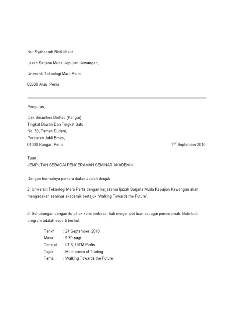 Related : Contoh Surat Jemputan Penceramah Seminar - Contoh Surat Jemputan Penceramah - For more information and source, see on this link :.